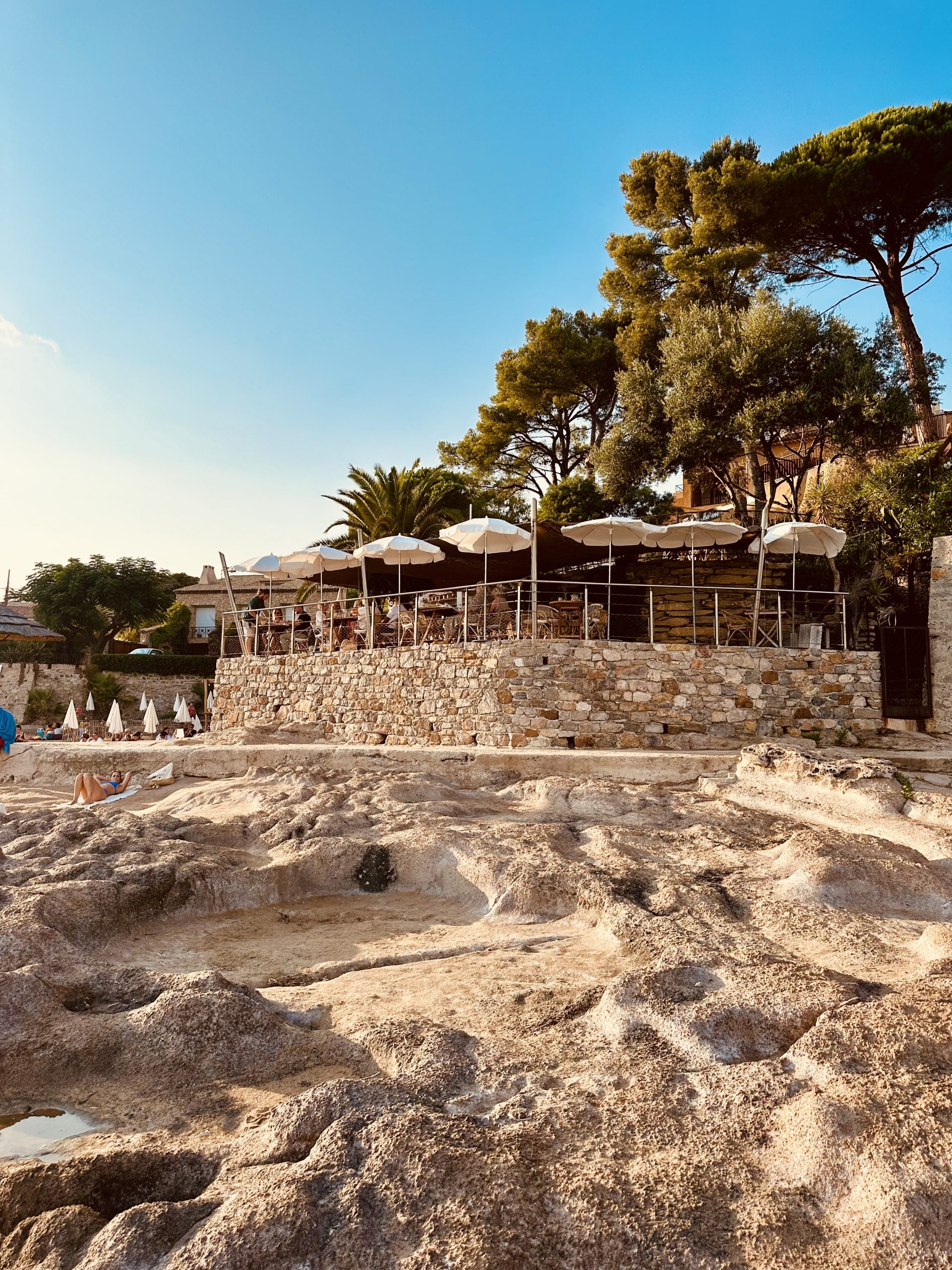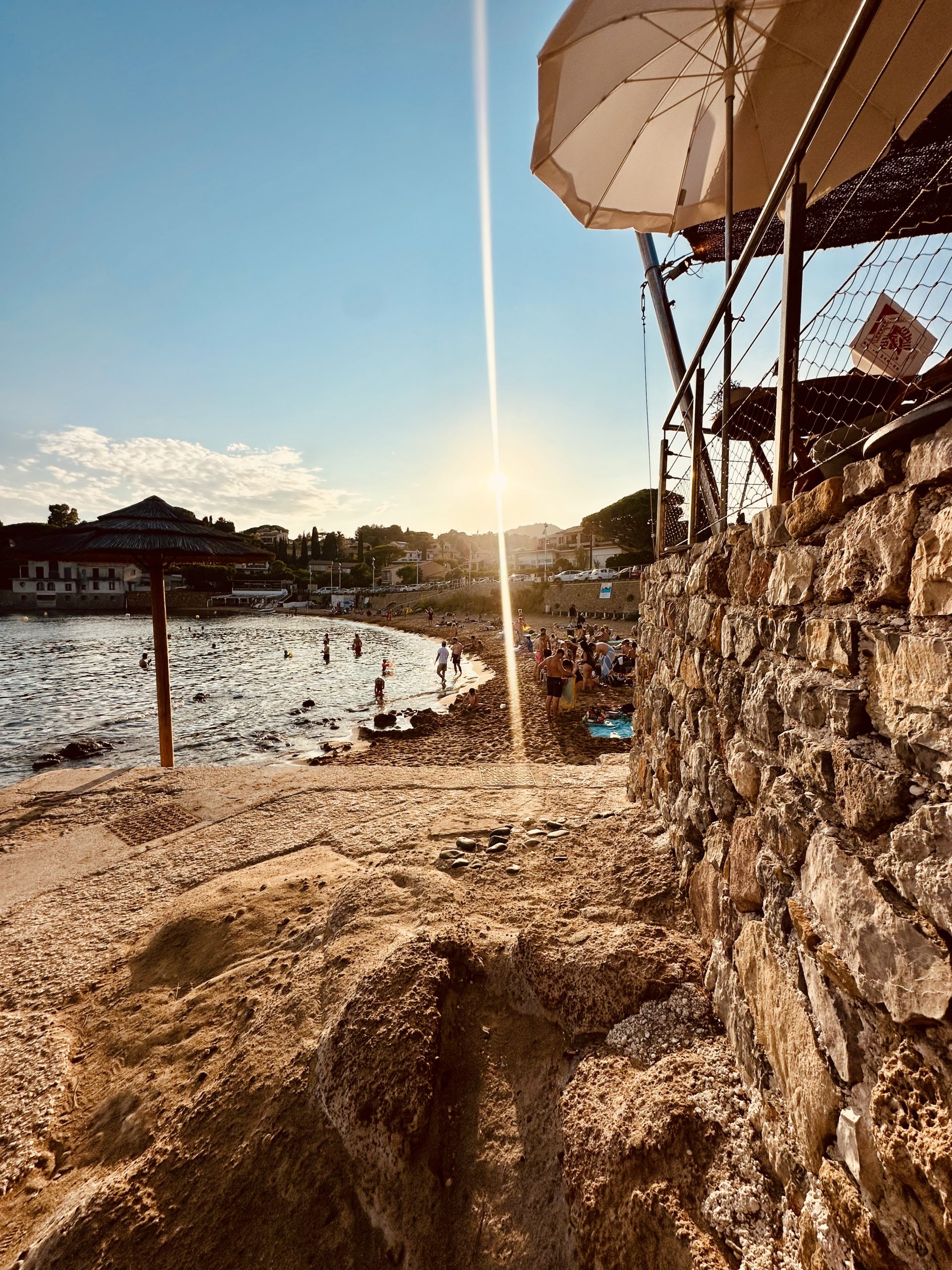 À l’abri des vents et exposée plein sud, la plage offre un cadre privilégié pour profiter des bains de soleil tout au long de la journée. En terrasse ou confortablement installé sur un transat, savourez le menu du déjeuner ou un encas raffiné, face à la mer.